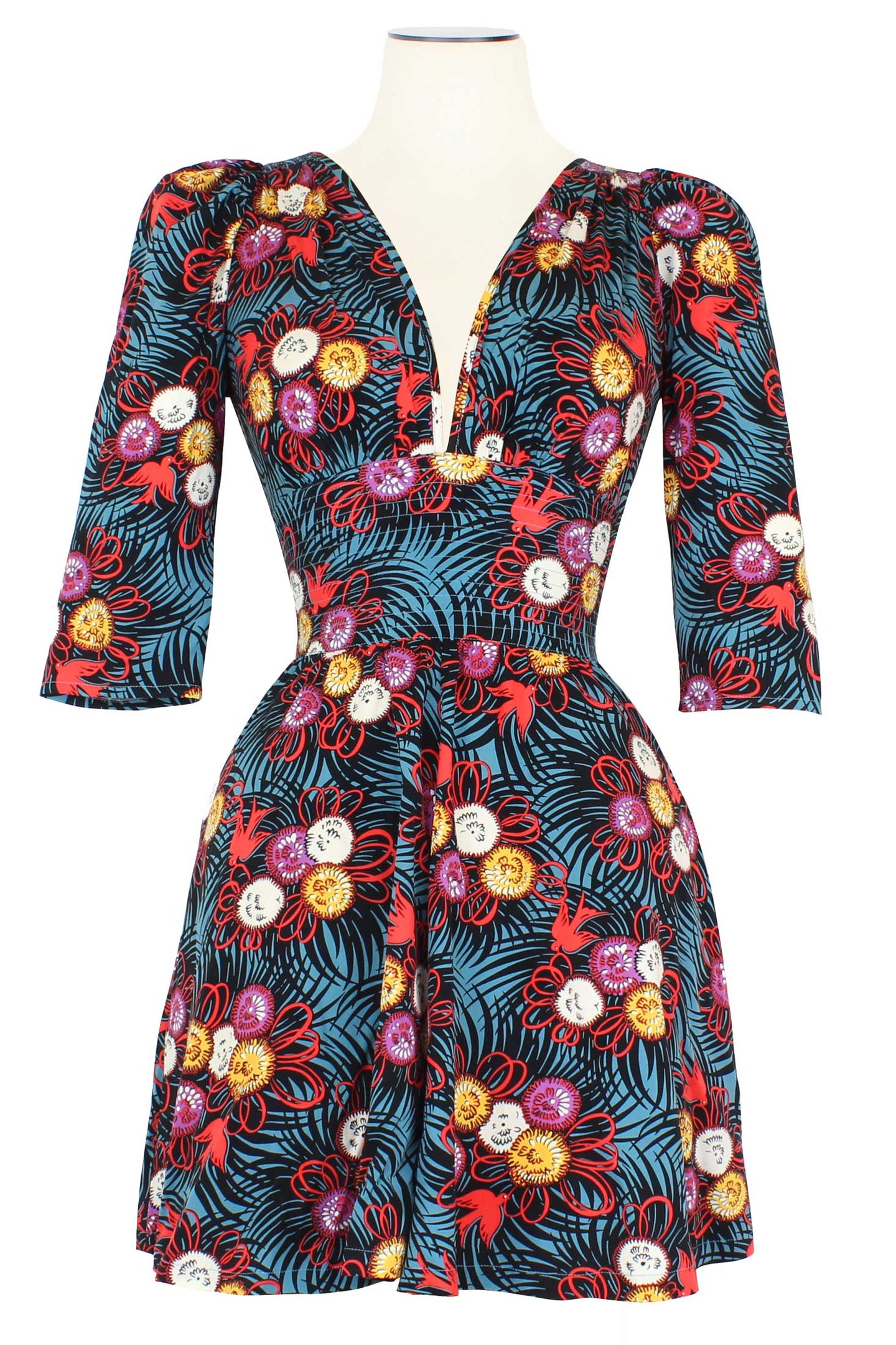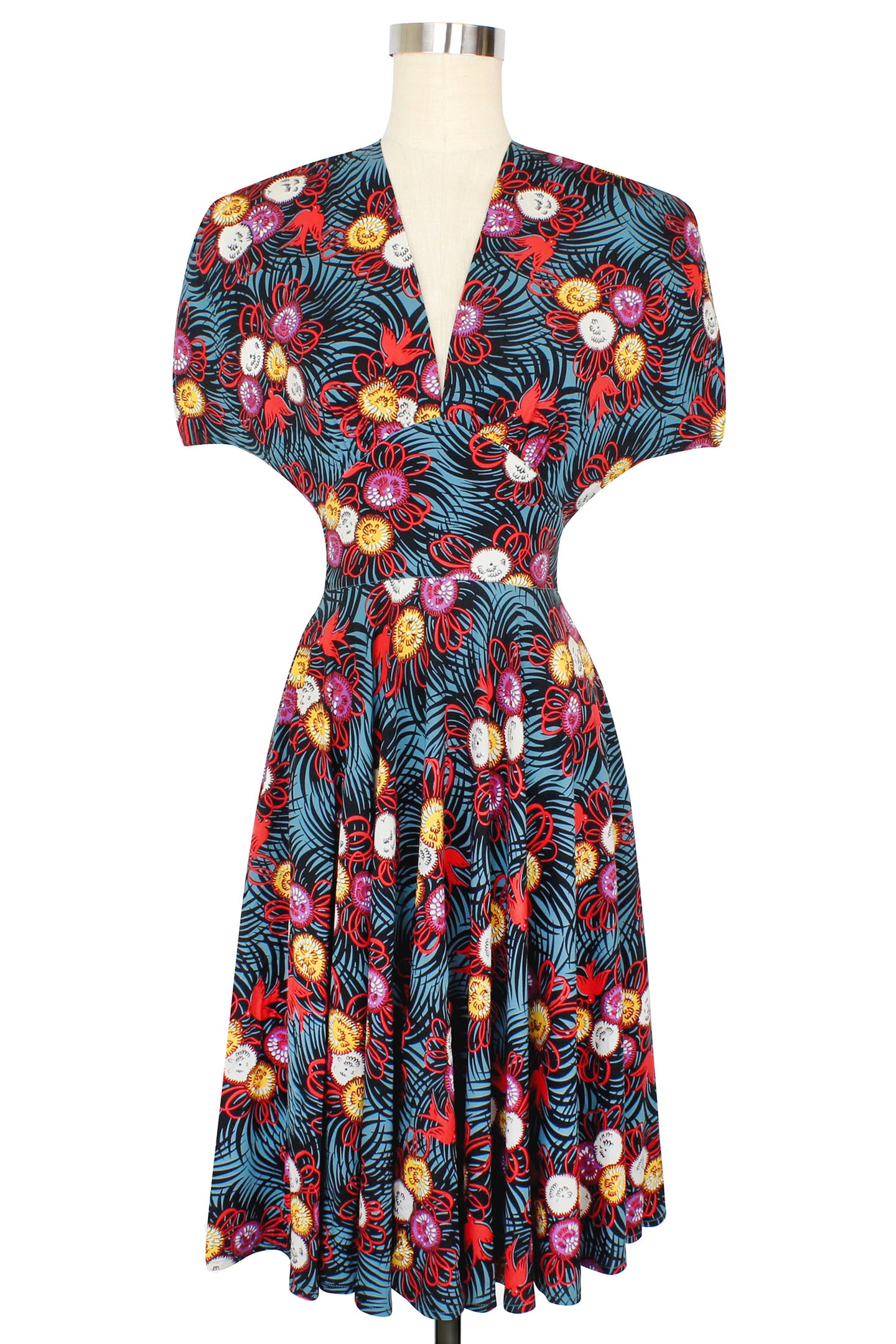 Curious Corsage is our love letter to the rare birds that we vintage lovers are!  This rare 40s novelty fabric recreated, features a quirky bird and flower corsage print. This soft thicker stretch rayon twill gives a great shape and fit to your favorite classic styles. Start this new year as bold, spirited, fun, and confident as you want to be!