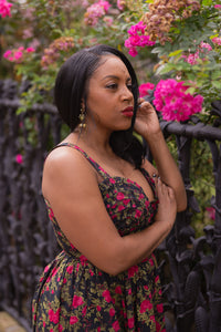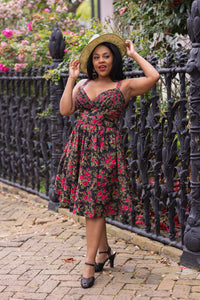 Rose red buds on black that are the reminiscent of a Fairytale combine with creamy bouquets of Pleasant pinks for our newest collections. This double dose of florals is sure to delight with curve flattering favorites in cool stretch cotton!