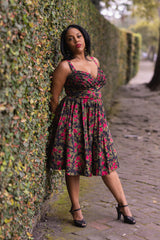The Apple Tartlet dress features classic 50s inspired ruffled bust and adjustable skinny straps that can be worn as a halter. A hidden back zipper offers a sleek silhouette while the gathered skirt is perfectly flirty! As if it couldn’t get any better, yes there are pockets!