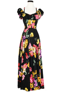 The Hollywood Circle Long Dress features a tailored bodice with elastic back panels for a comfortable yet form-fitting look finished with slender straps that can be adjusted to fit or to halter. An elegant off-the-shoulder ruffle (or on-the-shoulder) gives this dress a vintage flair.