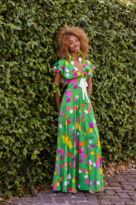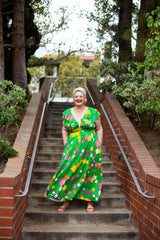 Our Ingenue Long Dress is fit for a queen featuring printed layers of circular cut ruffles and a removable tie. The base style is the Camilla Dress, so if you are a fan of that one- we hope you'll love her overly dramatic sister- the Ingenue Long!