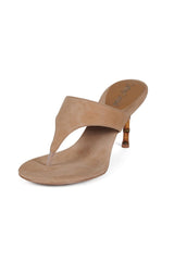 Round-toe heeled thong sandal with a bamboo-inspired heel detail by Jeffrey Campbell.