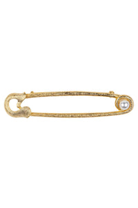 Safely put finished off any look with this delicate satin (brushed) gold-plated safety pin brooch featuring a faux pearl end.