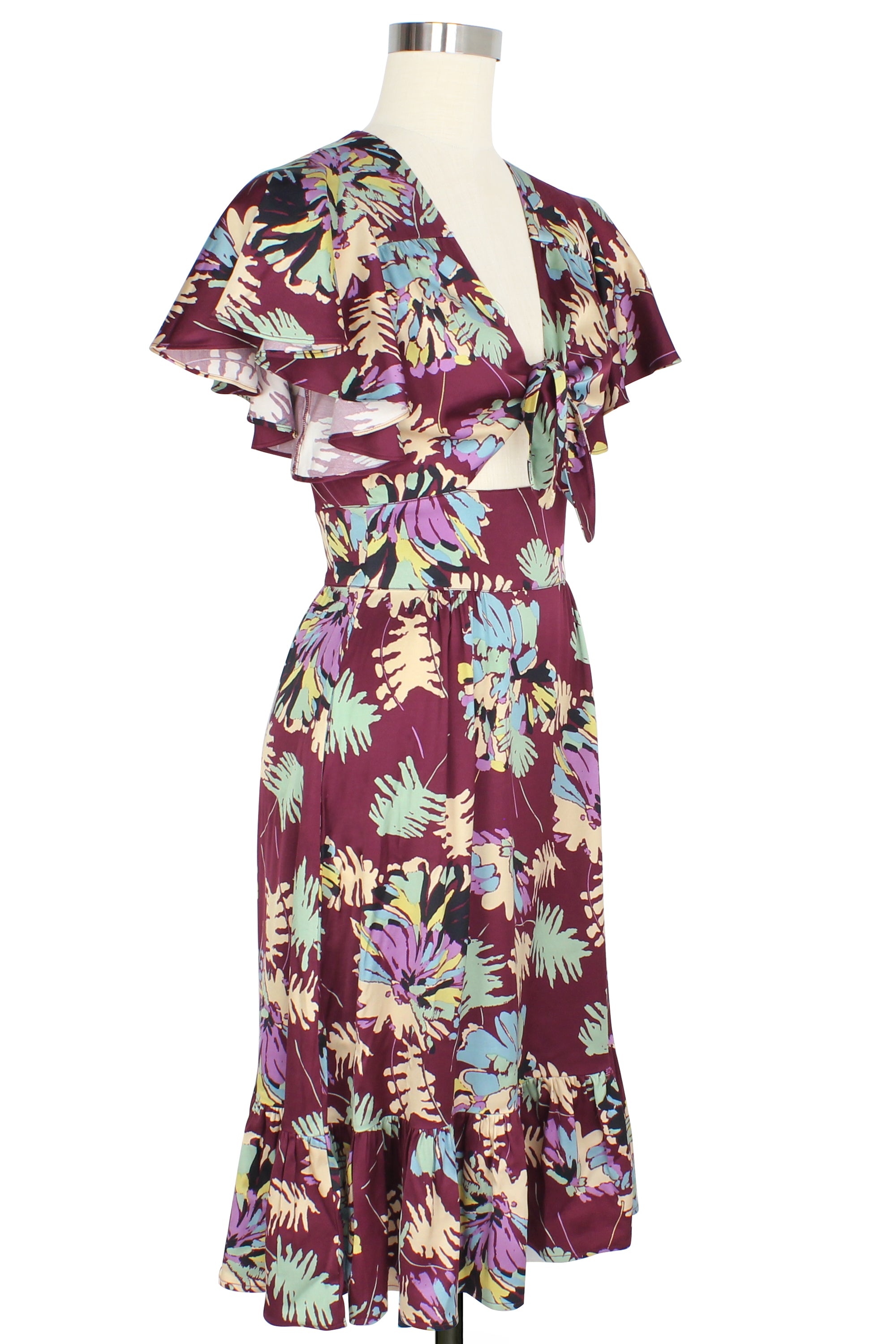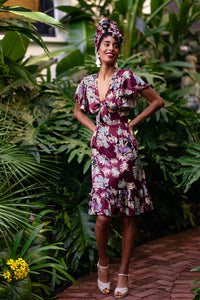 Mai Tie Dress - Bordeaux Ferns - Final Sale (In Store)