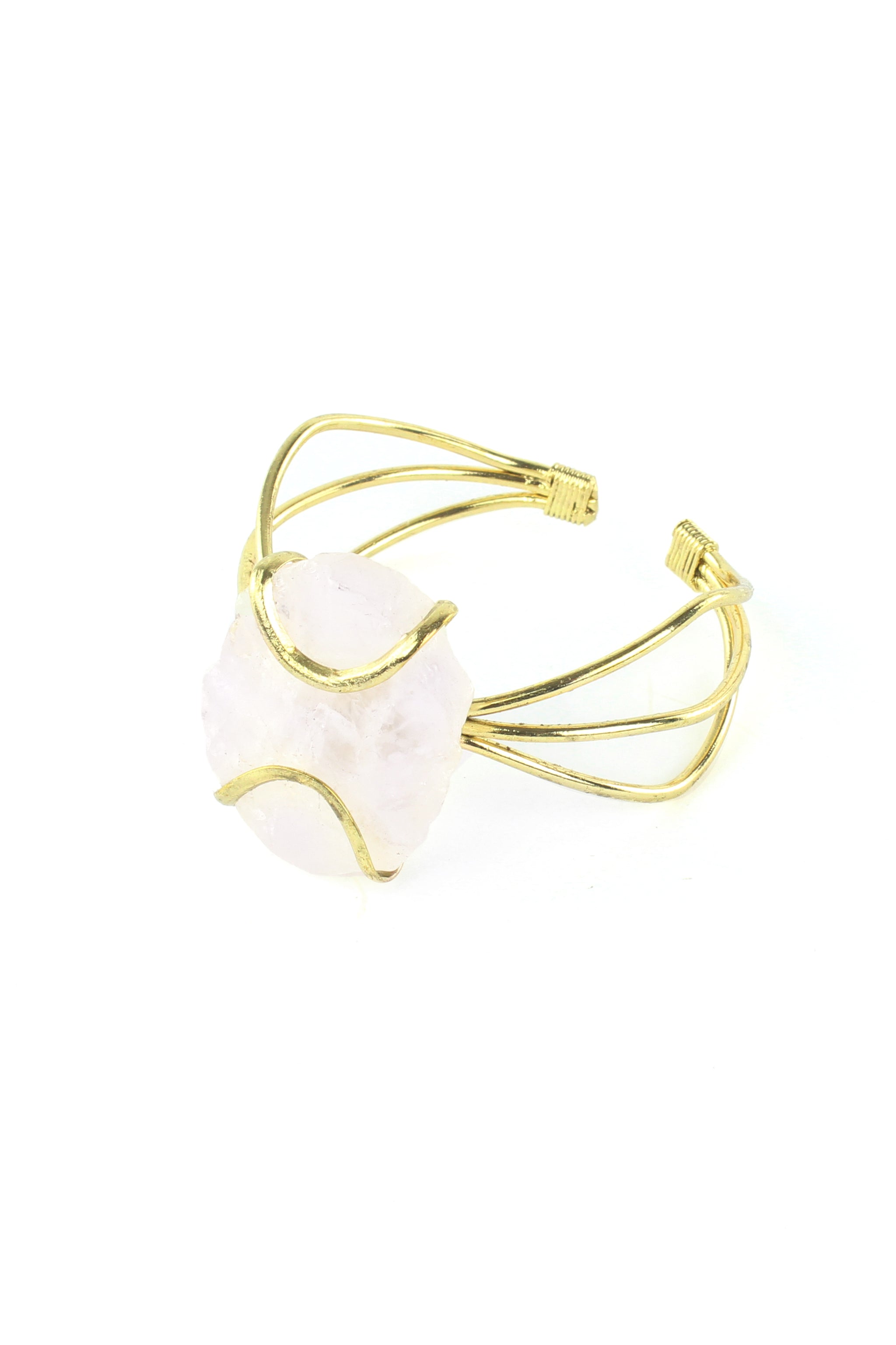 Natural Quartz and Gold Tone Wire Cuff
