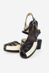 1940s wedge with strappy toe box details. Custom black and cream leather colorway exclusive to Trashy Diva. Limited edition!