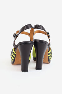 Sophisticated vamp details and cutouts add interest to this 1940’s classic peep-toe platform heel. Custom colorway, limited edition, designed specifically to match our Chartreuse collection.